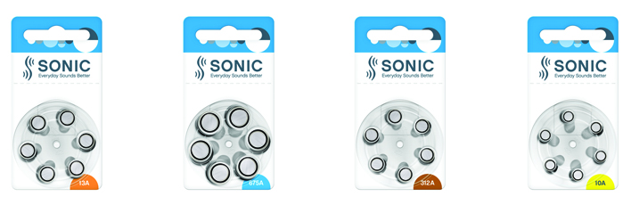 Sonic işitme cihazı pilleri dünyanın en büyük işitme cihazı pili üreticisi olan Rayovac tarafından imal edilerek Sonic için özel olarak paketlenmektedir.